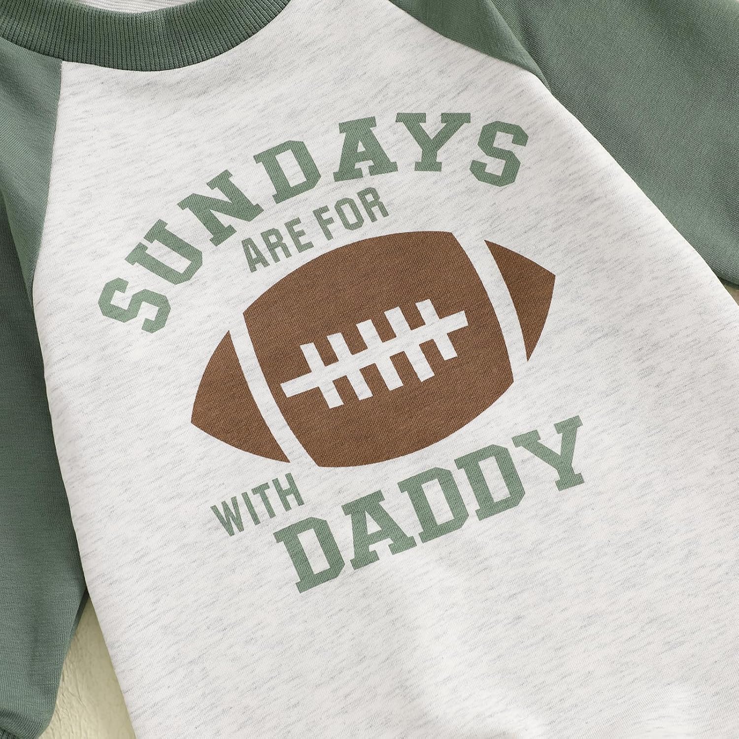 Infant Baby Boys Football Outfit Letter Print Sweatshirt Jumpsuit Romper Long Sleeve Bodysuit ClothesSize (cm)70 Length: 50 Bust: 46 Sleeve: 22 Advised Age: 0-3 Months80 Length: 55 Bust: 48 Sleeve: 24 Advised Age: 3-6 Months90 Length: 60 Bust: 50 Sleeve: 26 Advised Age: 6-12 Months100 Length: 65 Bust: 52 Sleeve: 28 Advised Age: 12-18 MonthsSize (inch)70 Length: 19.68 Bust: 18.11 Sleeve: 8.66 Advised Age: 0-3 Months80 Length: 21.65 Bust: 18.9 Sleeve: 9.45 Advised Age: 3-6 Months90 Length: 23.62 Bust: 19.68 Sleeve: 10.24 Advised Age: 6-12 Months100 Length: 25.59 Bust: 20.47 Sleeve: 11.02 Advised Age: 12-18 MonthsSpecification:Materials: 73.3% Cotton, 20.4% Polyester, 6.3% ElastaneStyle: CasualPattern: Letter Football EmbroiderySleeve: Long SleevePackage Included1 * JumpsuitNote:1. Please understand there may be a 1-2 cm deviation exist.2. Due to lighting and monitors, there is a slight difference between picture and real item.